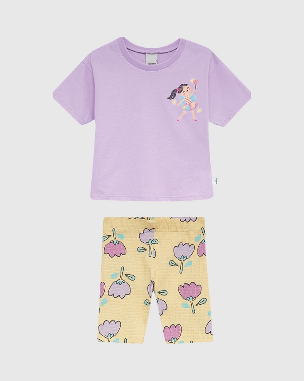 InfantilConjuntosConjuntos CurtosConjunto Infantil Menina Blusa Estampa Frente E Costas Em Algodão Malwee Kids