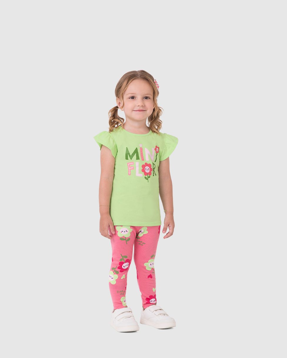 Conjunto Infantil Menina Blusa Estampa Glitter Mini Flor + Calça Malwee Kids