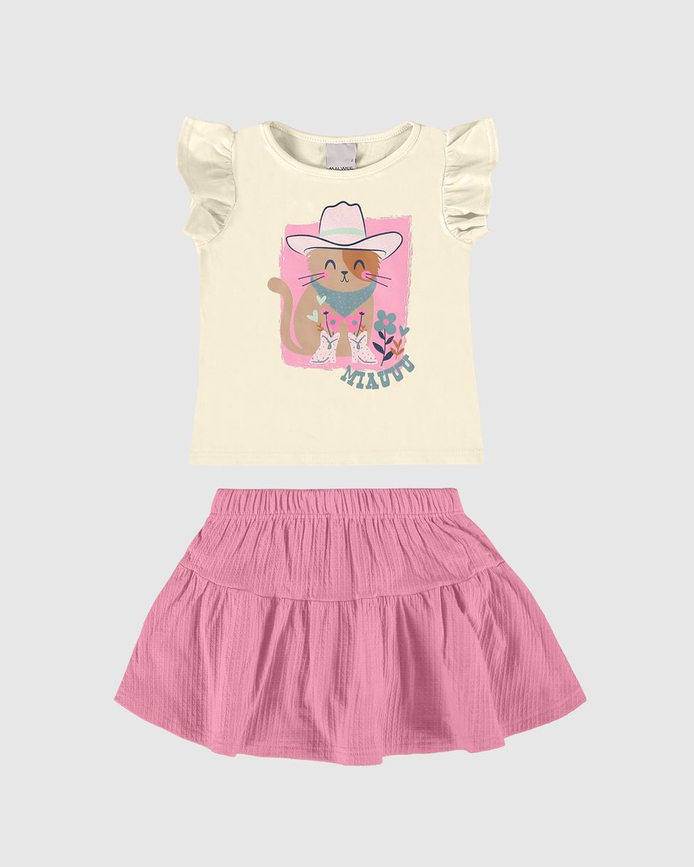 Conjunto Infantil Menina Blusa Estampada E Saia Evasê Malwee Kids