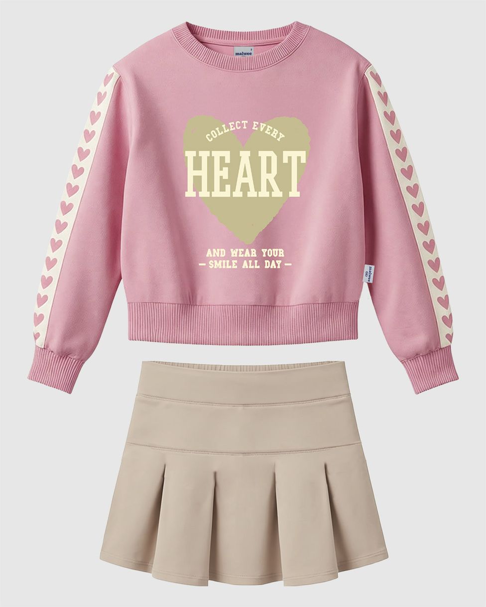 Conjunto Infantil Menina Blusa Heart E Saia Pregas Em Moletinho Malwee Kids