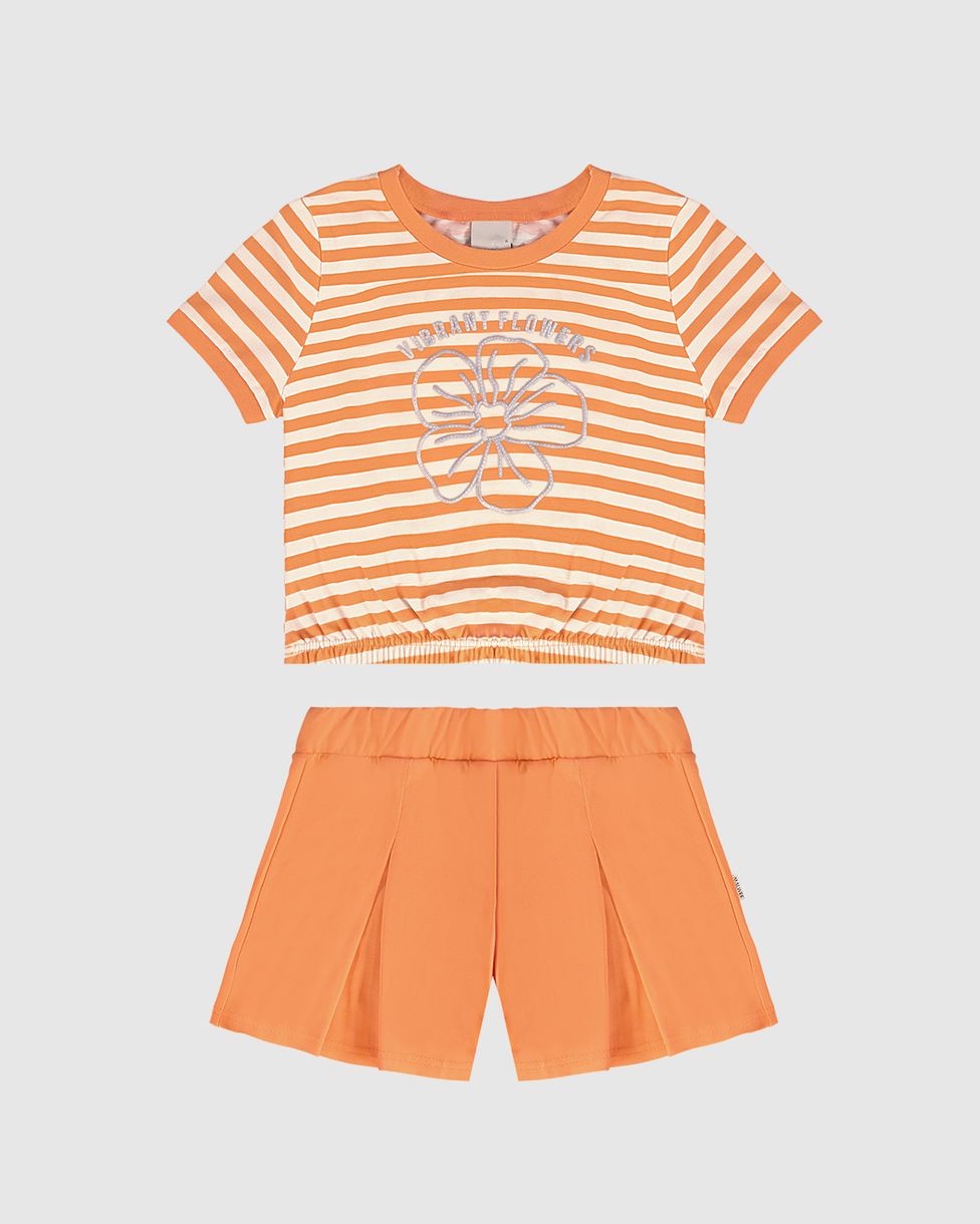 Explore o estilo e delicadeza do Conjunto Infantil Menina Blusa Listrada Flowers Em Algodão Malwee Kids. Este conjunto harmoniza listras clássicas com toques florais, oferecendo um visual encantador e confortável para as meninas desfrutarem de cada momento com alegria.