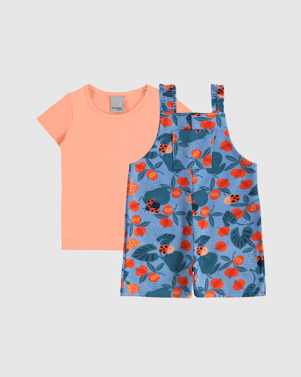 Conjunto Infantil Menina Blusa + Macaquinho Estampado Em Algodão Malwee Kids