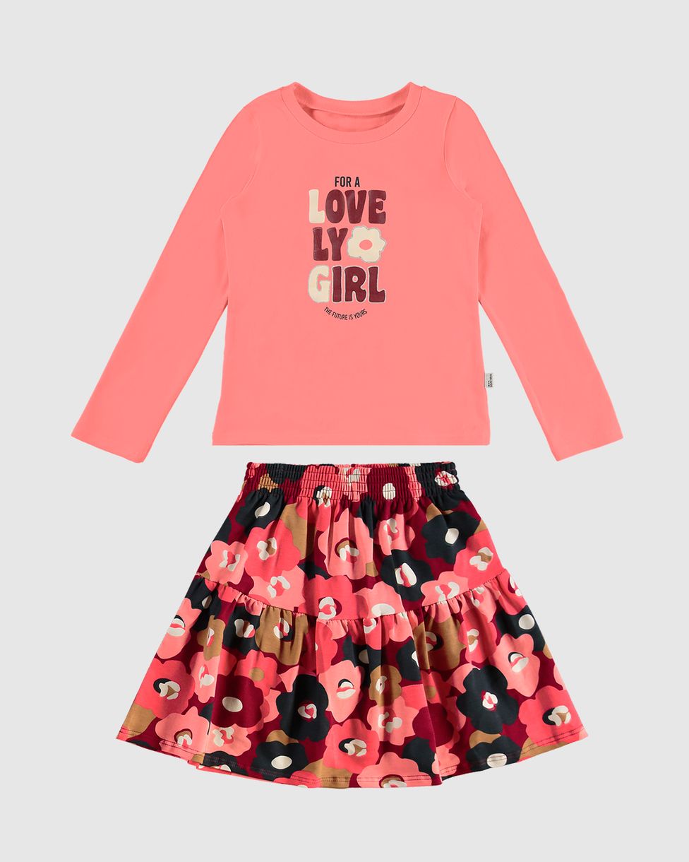 Conjunto Infantil Menina Blusa + Saia Babados Estampada Malwee Kids