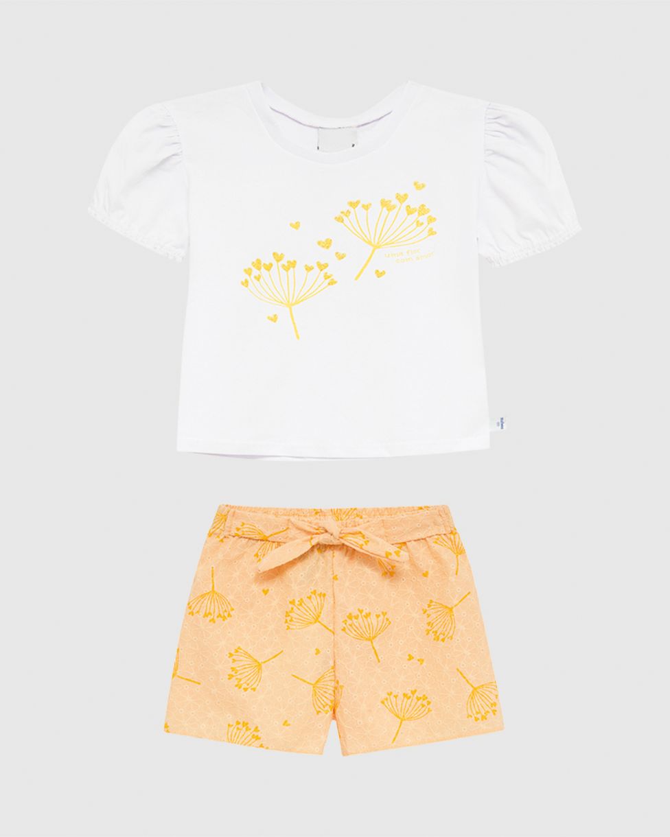 Conjunto Infantil Menina Blusa Manga Bufante E Shorts Laise Algodão Malwee Kids