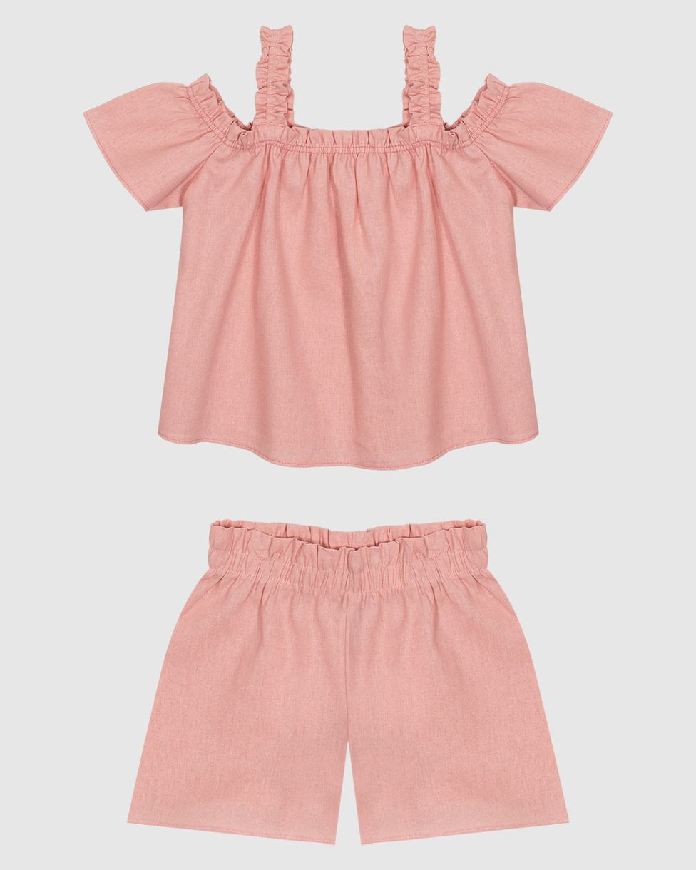 O Conjunto Infantil Menina Blusa Ombro A Ombro + Alça Em Viscolinho Malwee Kids é perfeito. Feito em viscolinho leve e macio, este conjunto é ideal para os dias de diversão sob o sol. A blusa charmosa com detalhe ombro a ombro e alças e o shorts com elástico garantem estilo e liberdade total de movimento.