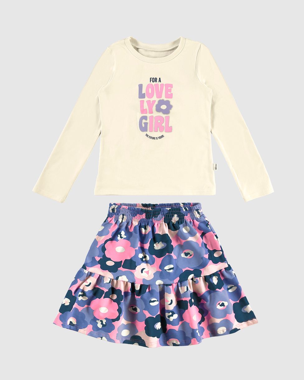 Conjunto Infantil Menina Blusa + Saia Babados Estampada Malwee Kids
