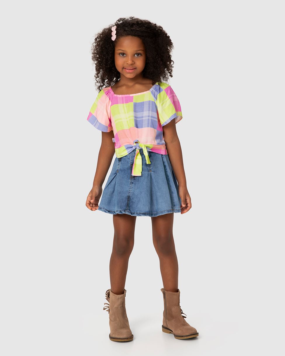 Conjunto Infantil Menina Blusa Xadrez + Saia Jeans Malwee Kids