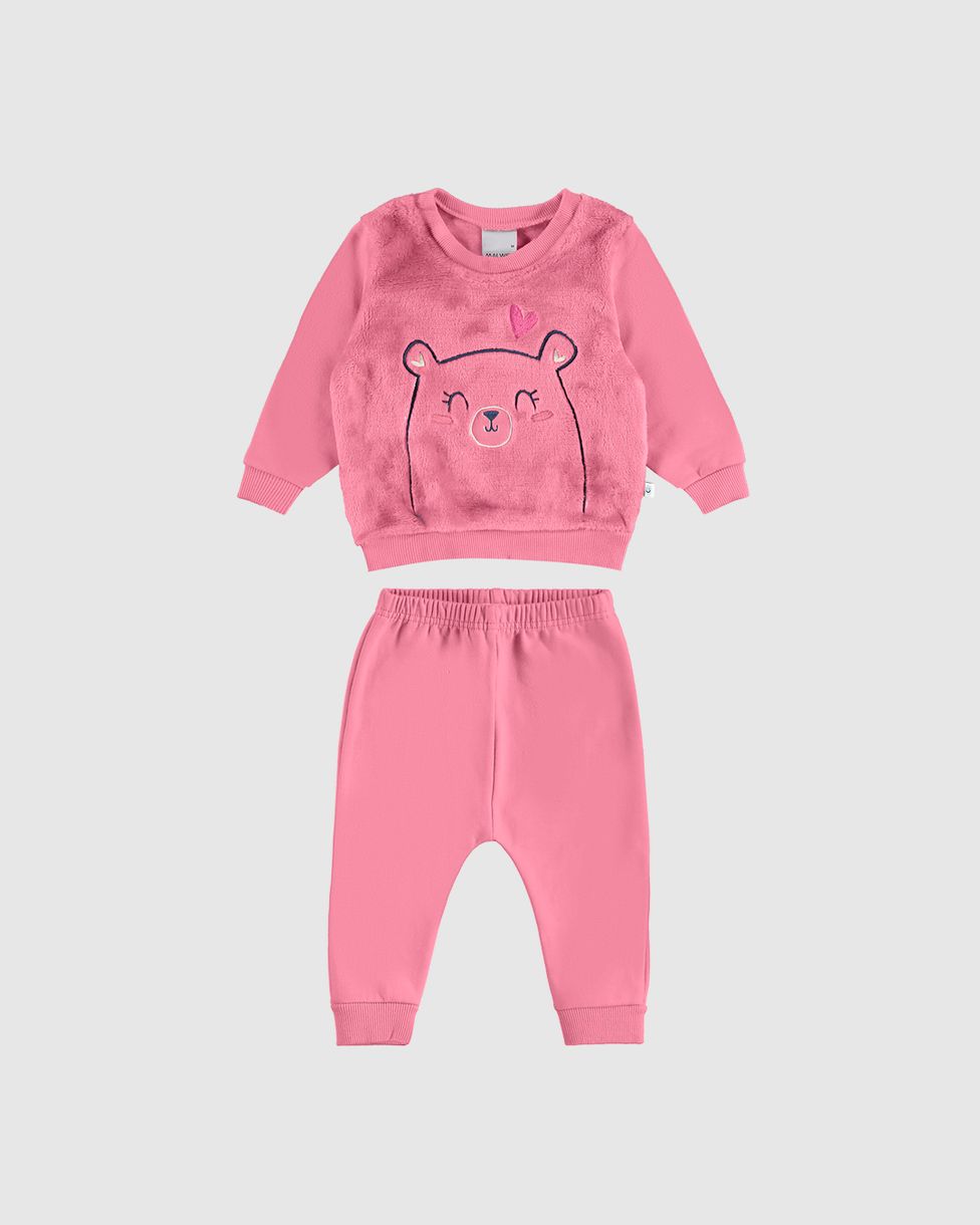 Conjunto Infantil Menina Blusão Com Bordado Em Pelúcia Malwee Kids