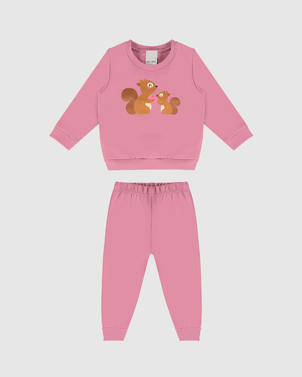 Conjunto Infantil Menina Blusão E Calça Em Moletom Flanelado Malwee Kids