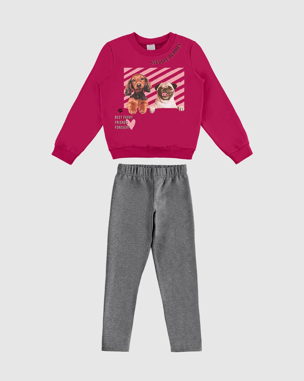 Conjunto Infantil Menina Blusão E Legging Em Moletom Flanelado Malwee Kids