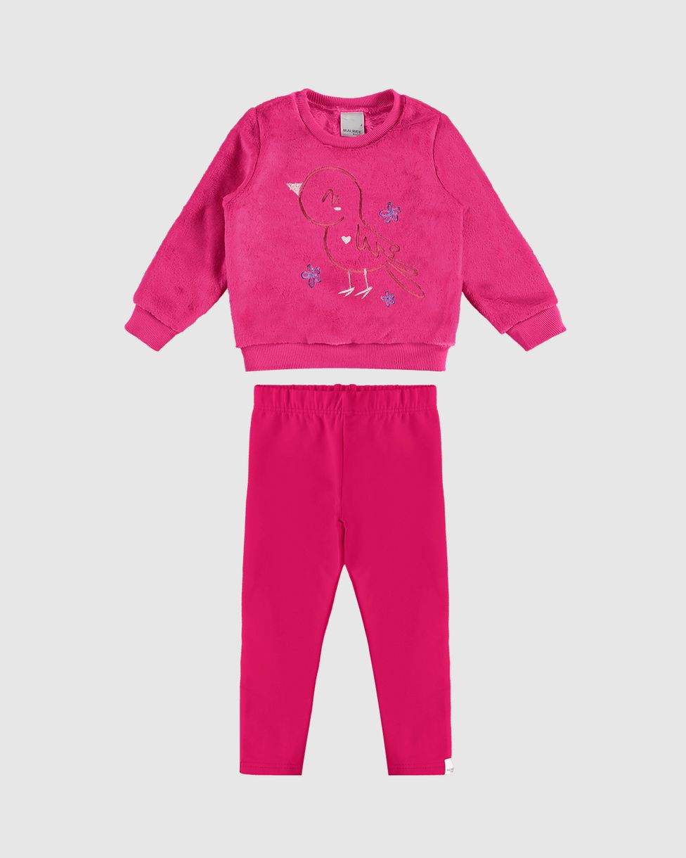 Conjunto Infantil Menina Blusão Estampa Bordada Em Pelúcia Malwee Kids