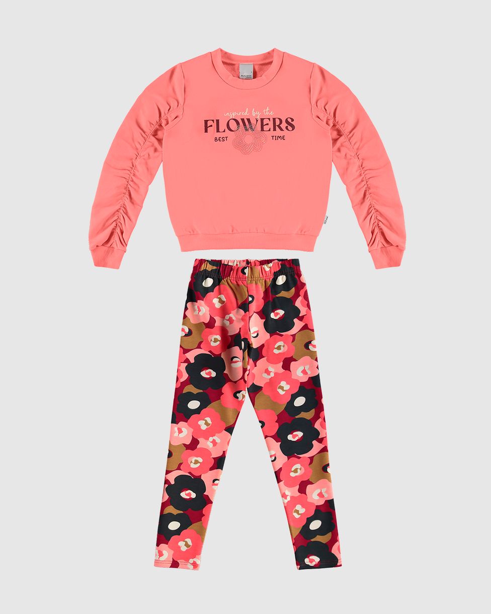InfantilConjuntosConjuntos LongosConjunto Infantil Menina Blusão Flowers Bordado Paetê Malwee Kids