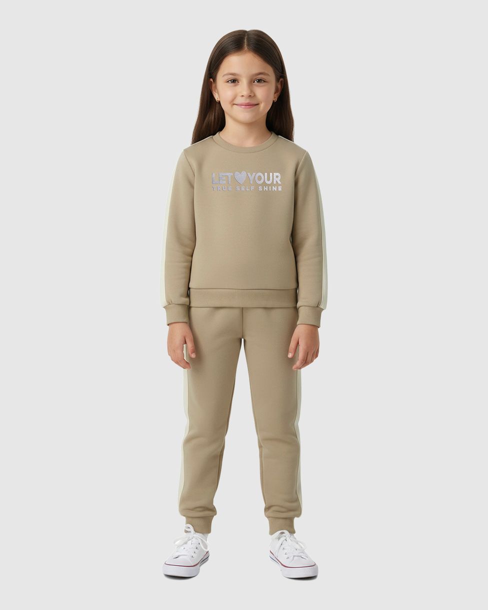 O Conjunto Infantil Menina Malwee Kids é ideal para expressar a personalidade com brilho e conforto. Composto por blusão e calça, o modelo da coleção Outono Inverno 2026 traz a mensagem "Let Your True Self Shine", unindo estilo e bem-estar para o dia a dia das meninas.