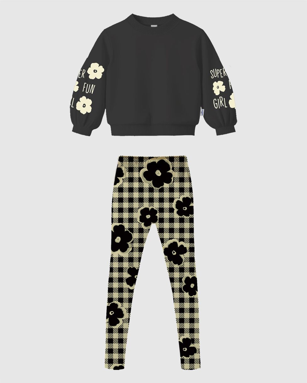 O Conjunto Infantil Menina Malwee Kids destaca-se pelo visual moderno e cheio de personalidade. Composto por um blusão com mangas bufantes e estampa em puff, acompanhado de uma calça em padronagem xadrez floral, ele garante um look fashionista e confortável para o Outono Inverno.