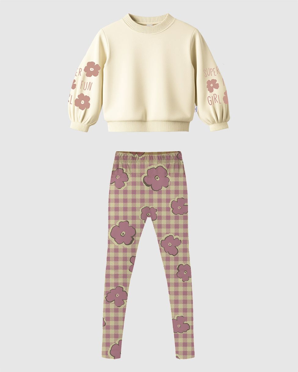O Conjunto Infantil Menina Malwee Kids destaca-se pelo visual moderno e cheio de personalidade. Composto por um blusão com mangas bufantes e estampa em puff, acompanhado de uma calça em padronagem xadrez floral, ele garante um look fashionista e confortável para o Outono Inverno.