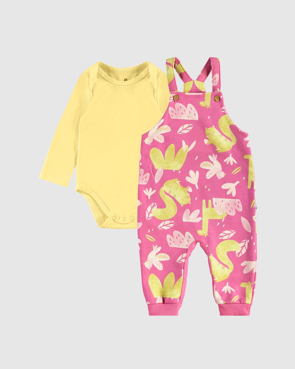 Conjunto Infantil Menina Body E Macacão Estampado Malwee Kids
