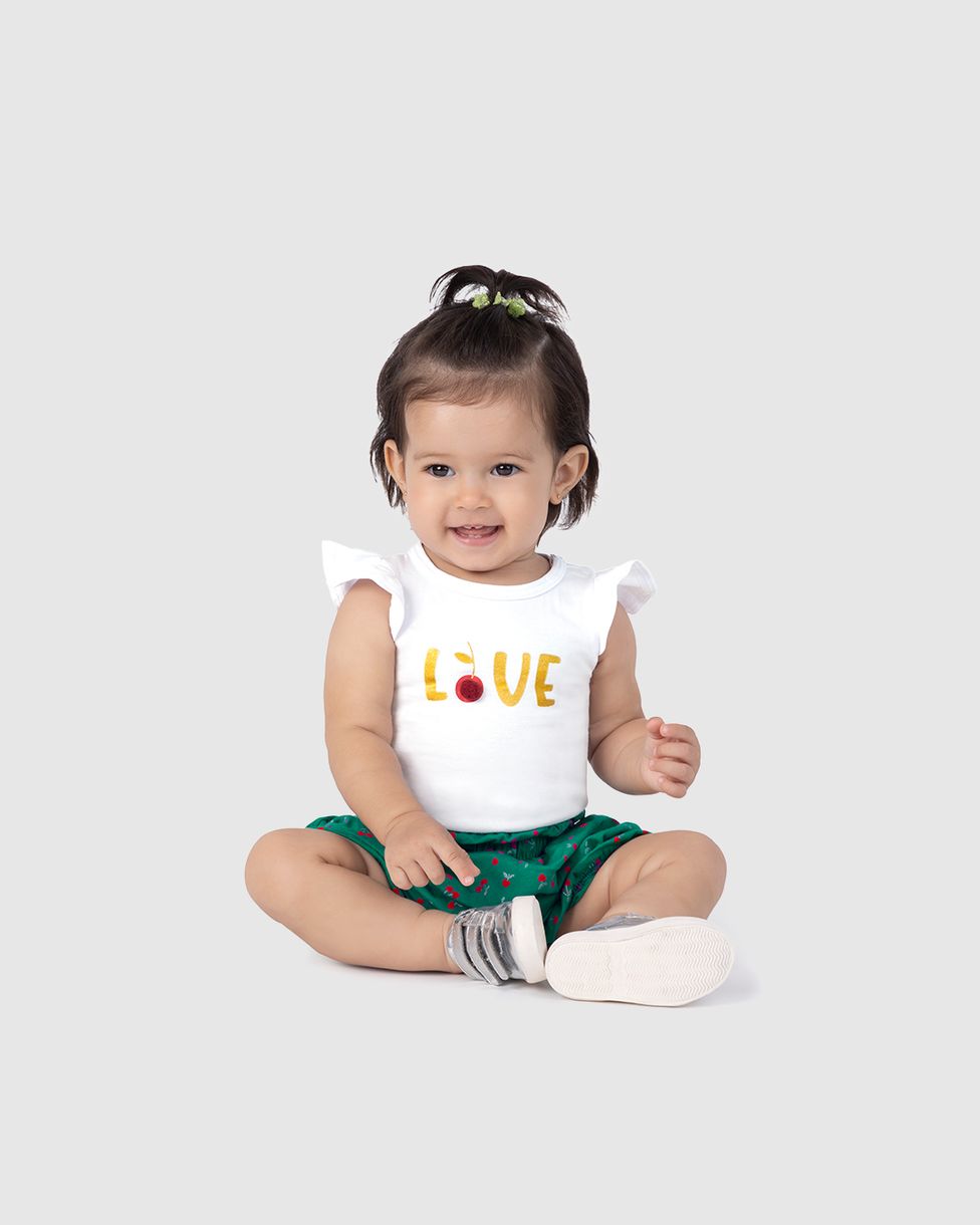 Conjunto Infantil Menina Body Estampa + Pompom Em Algodão Malwee Kids