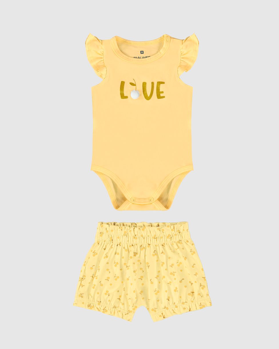 Conjunto Infantil Menina Body Estampa + Pompom Em Algodão Malwee Kids