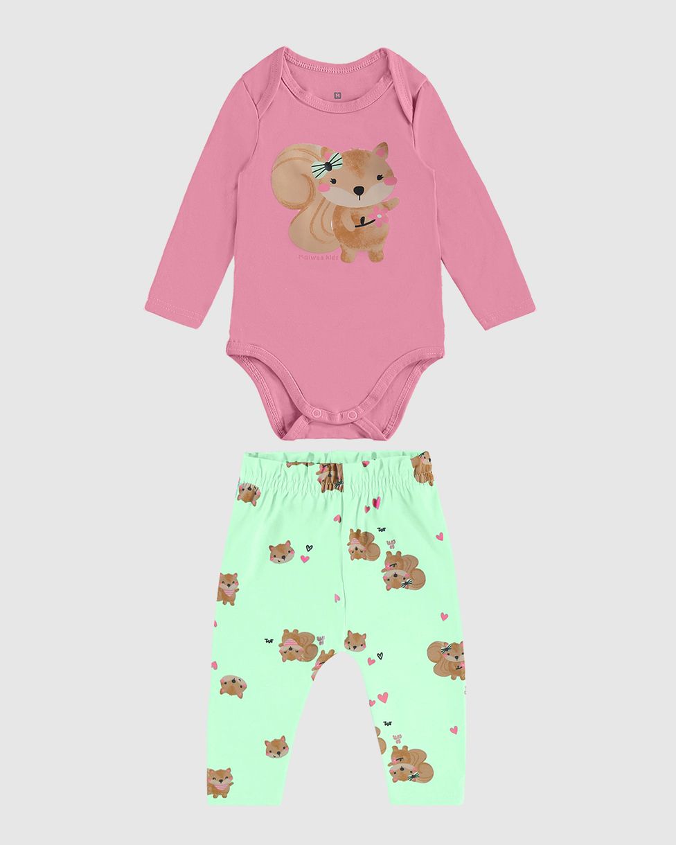 Conjunto Infantil Menina Body Manga Longa E Calça Em Algodão Malwee Kids