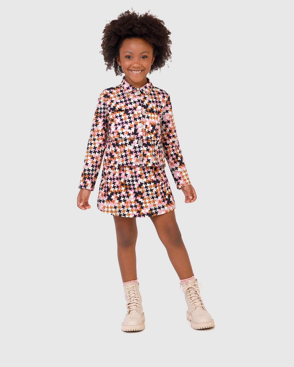 Conjunto Infantil Menina Camisa E Shorts Saia Em Moletom Stretch Malwee Kids