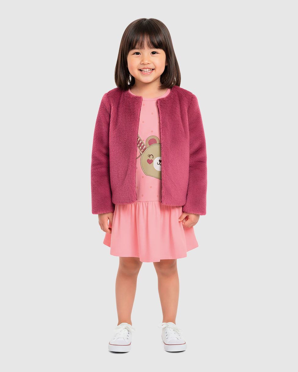 Conjunto Infantil Menina Casaco Pelúcia E Vestido Estampa Ursinho Malwee Kids