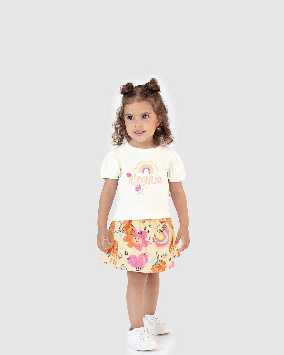 Conjunto Infantil Menina Colorindo O Mundo De Alegria Em Algodão Malwee Kids Off White - 1