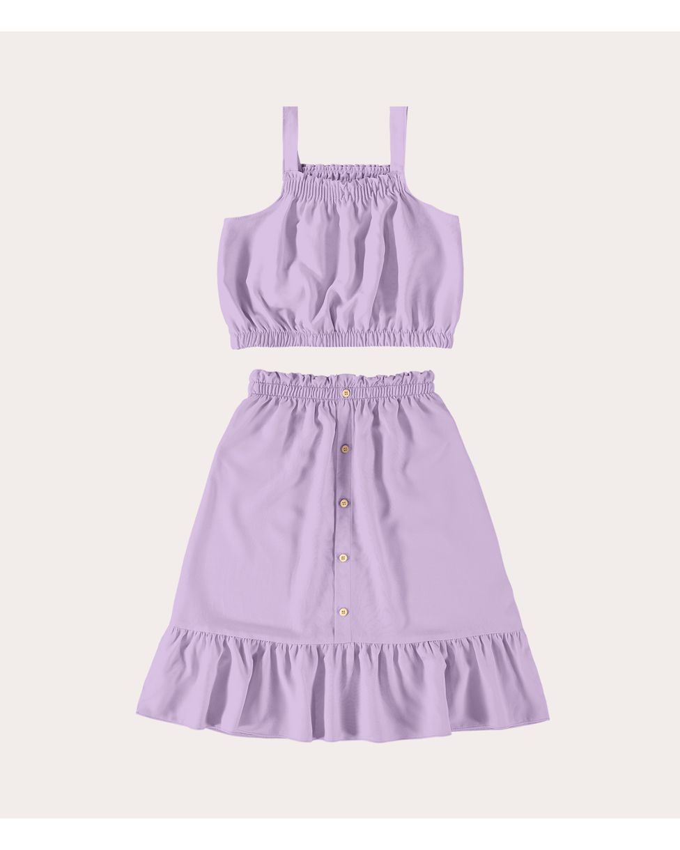 Conjunto infantil confeccionado em malha Viscose. Parte superior Blusa Regata estampa divertida com modelagem cropped e barra em elástico. Já sua parte inferior a Saia Midi com cintura em elástico, com caimento babado que proporciona estilo para o dia a dia. Um conjunto que pode ser usado junto ou em separado com outras peças da Malwee Kids!