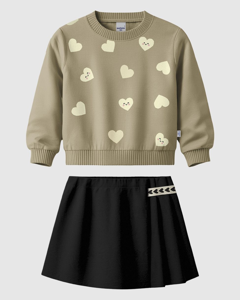InfantilConjuntosConjuntos CurtosConjunto Infantil Menina Estampa Glitter Corações E Shorts Saia Malwee Kids