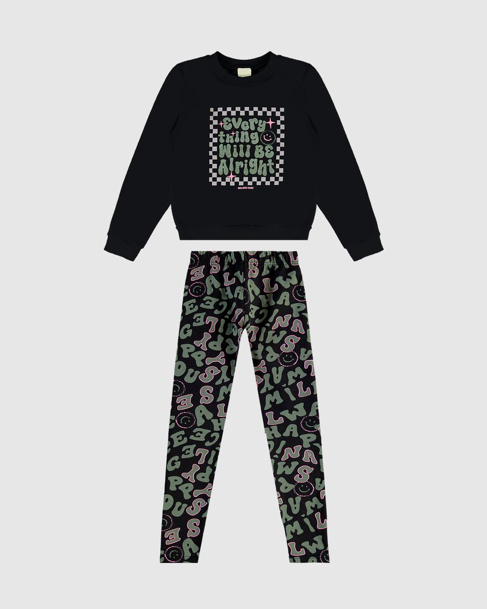 Conjunto Infantil Menina Estampa Lettering Em Moletom Flanelado Malwee Kids