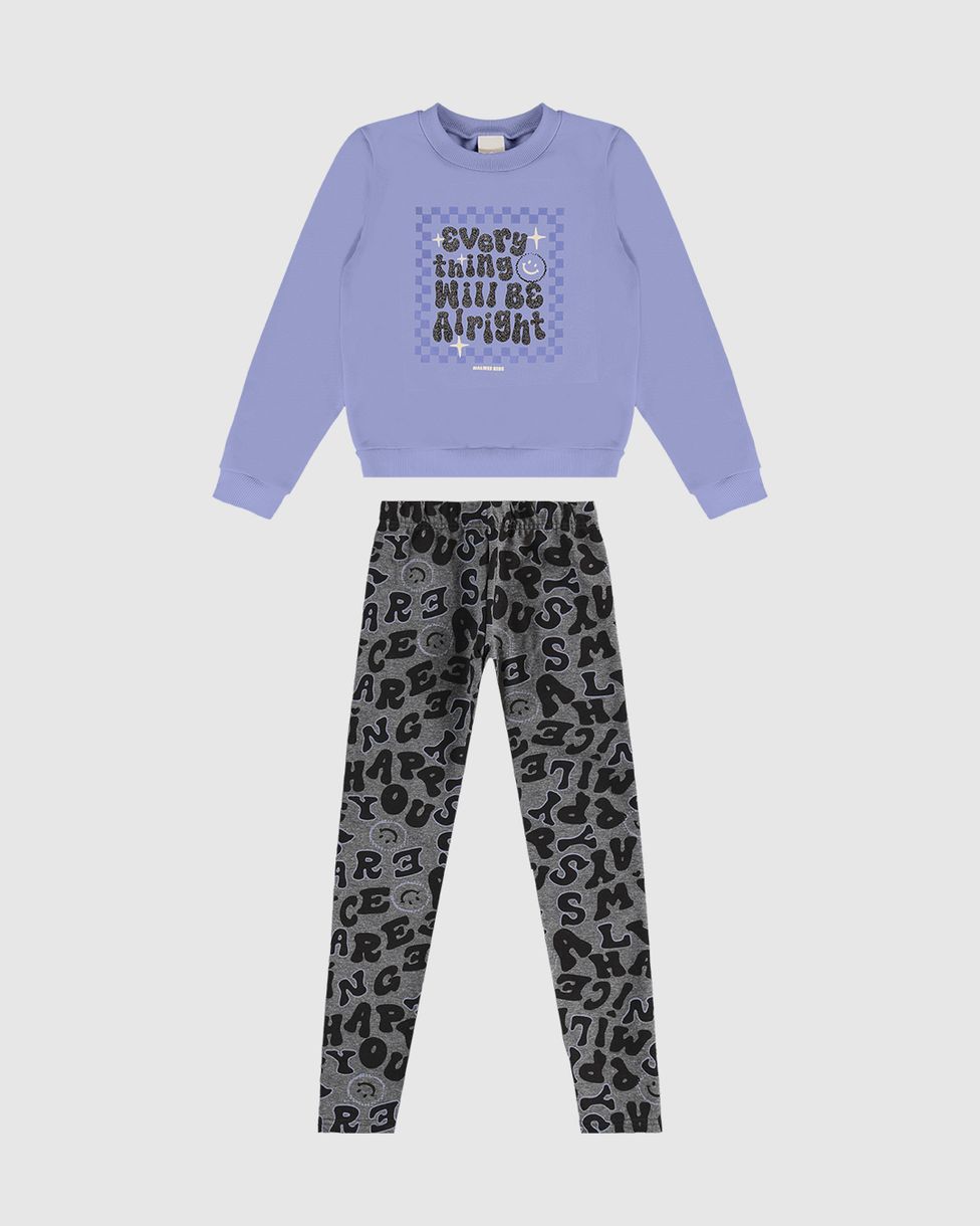 InfantilConjuntosConjuntos LongosConjunto Infantil Menina Estampa Lettering Em Moletom Flanelado Malwee Kids