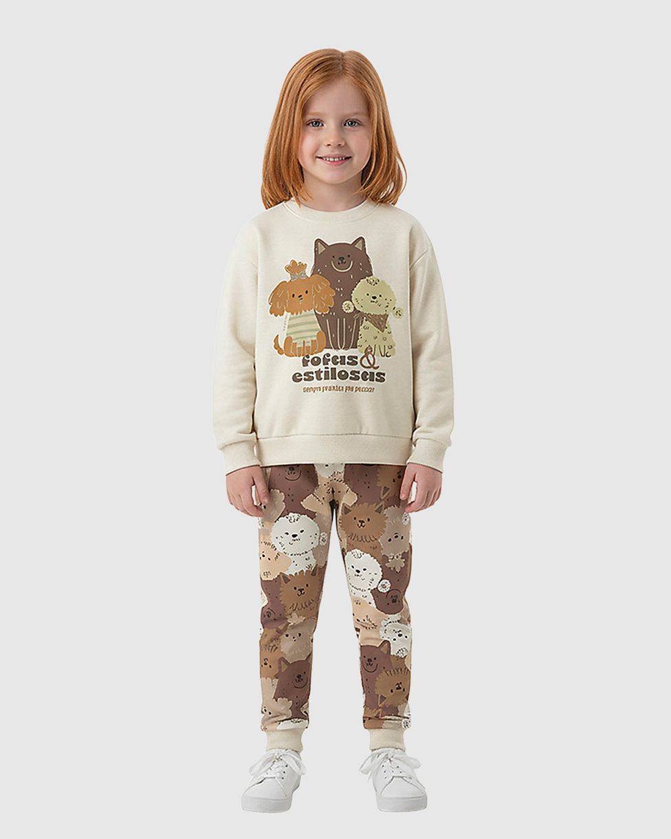InfantilConjuntosConjuntos LongosConjunto Infantil Menina Estampado Blusão E Calça Moletom Flanelado Malwee Kids