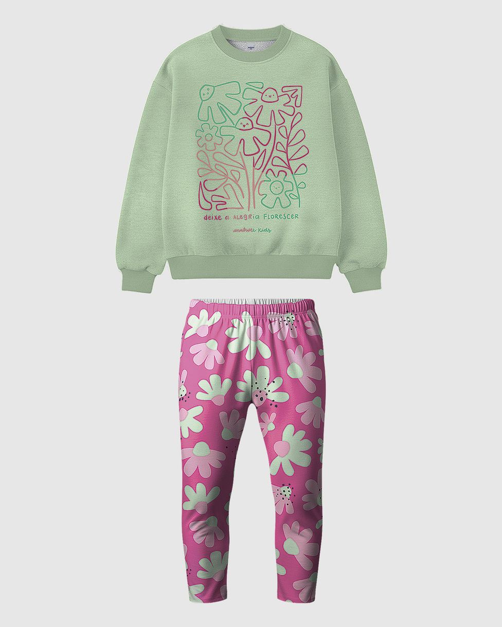 Conjunto Infantil Menina Estampado Blusão E Calça Moletom Flanelado Malwee Kids