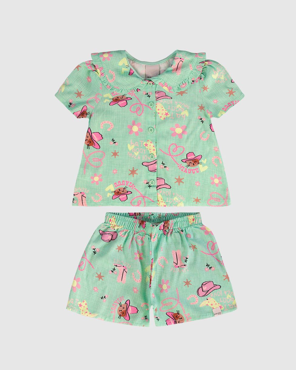 Conjunto Infantil Menina Estampado Camisa Gola Babado Em Viscose Malwee Kids
