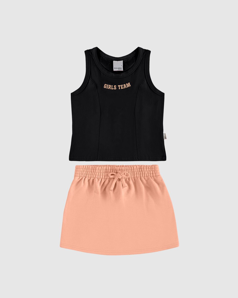 Conjunto Infantil Menina Girls Team da Malwee Kids é ideal para as garotas que adoram estilo e conforto! Com regata em algodão e shorts saia em moletom mesclado, combina modernidade e praticidade em um visual super charmoso. Perfeito para passeios, brincadeiras e momentos especiais com um toque fashion.