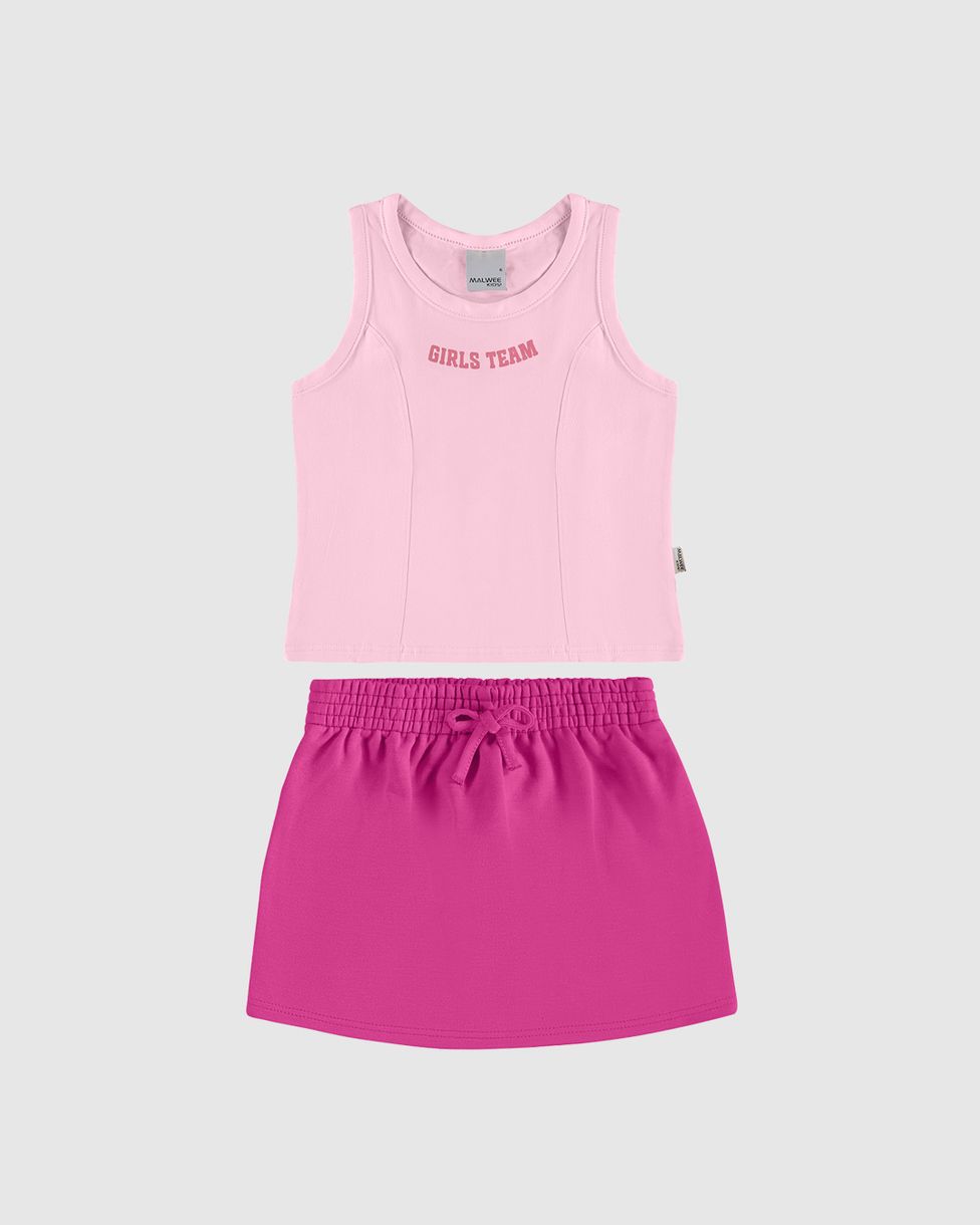 Conjunto Infantil Menina Girls Team Com Shorts Saia Em Moletom Malwee Kids