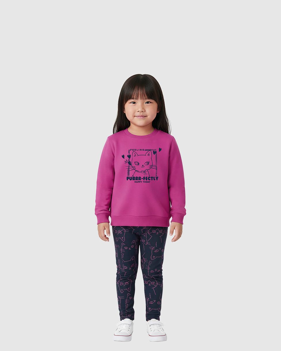 O Conjunto Infantil Menina Malwee Kids é puro charme para os dias de inverno. Confeccionado em moletom flanelado, ele oferece um toque macio e o aquecimento necessário para o bem-estar das crianças. Com a estampa de gatinho e "Happy Days" e detalhes em glitter, o look une brilho, conforto e muita fofura.