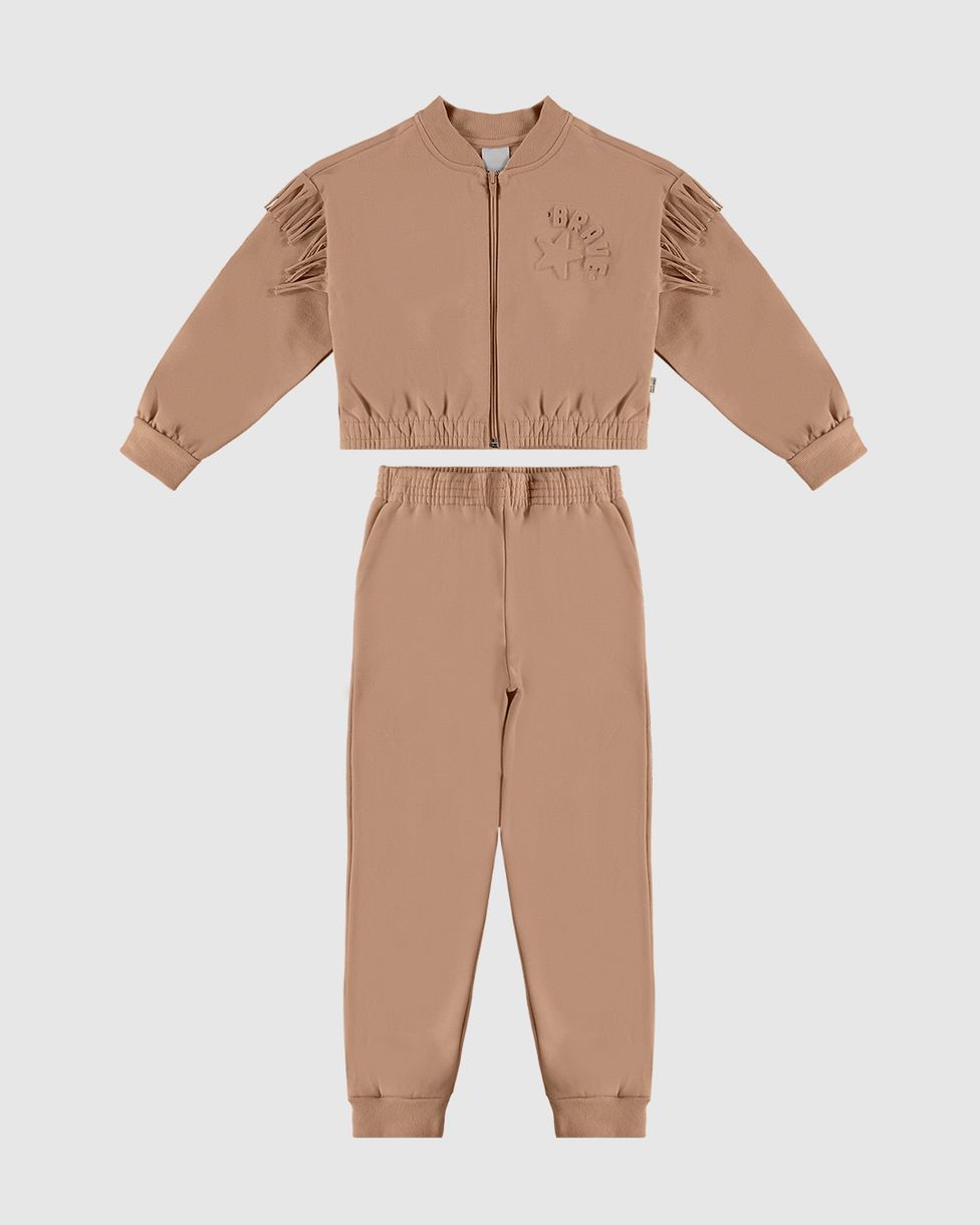 Conjunto Infantil Menina Jaqueta Manga Com Franjas Em Moletom Malwee Kids