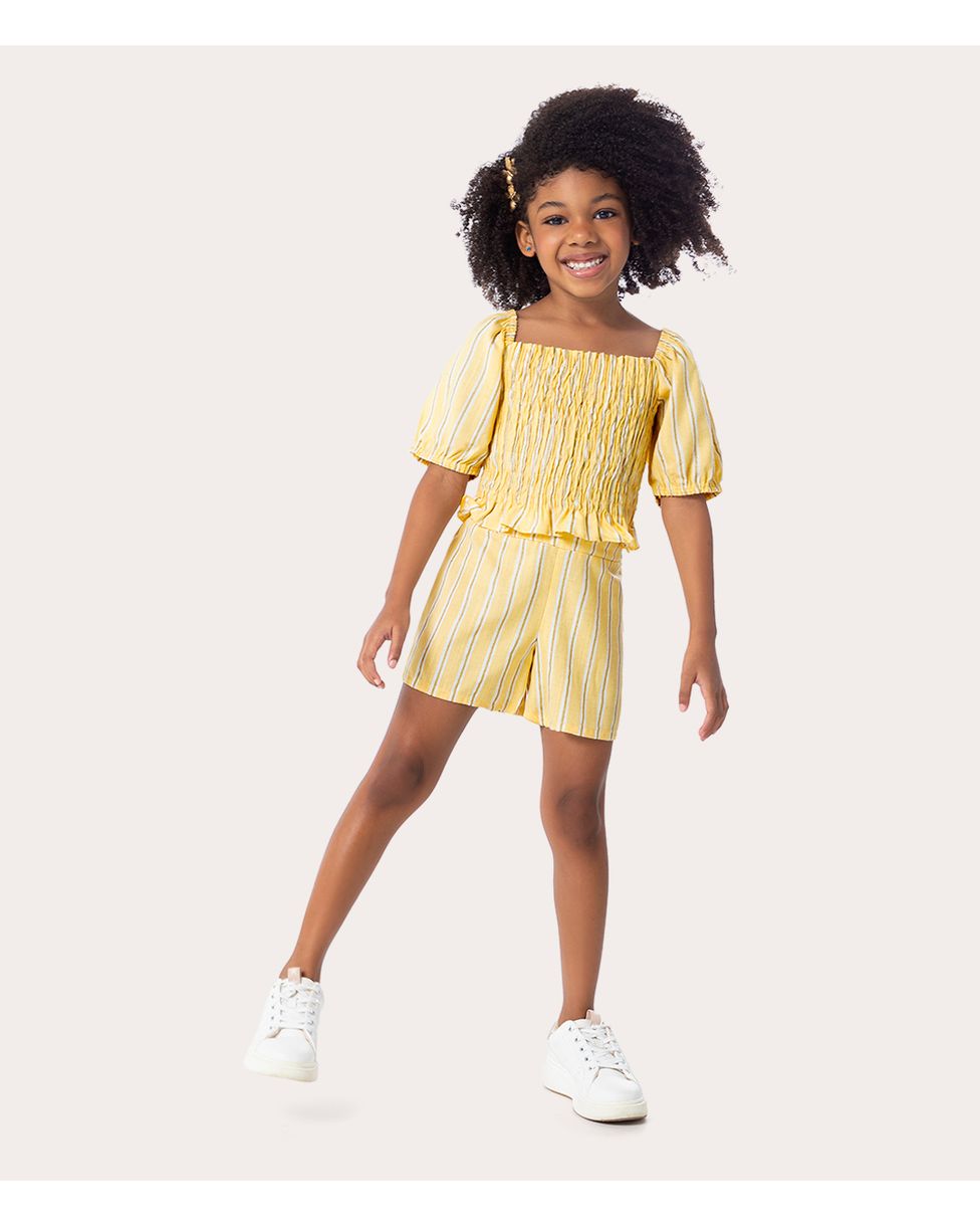 Conjunto infantil confeccionado em meia malha Linho. Parte superior Blusa com modelagem mais justa, contando com decote reto, Mangas Bufante. Já sua parte inferior Shorts, que proporciona conforto para as brincadeiras do dia a dia. Um conjunto que pode ser usado junto ou em separado com outras peças da Malwee Kids!