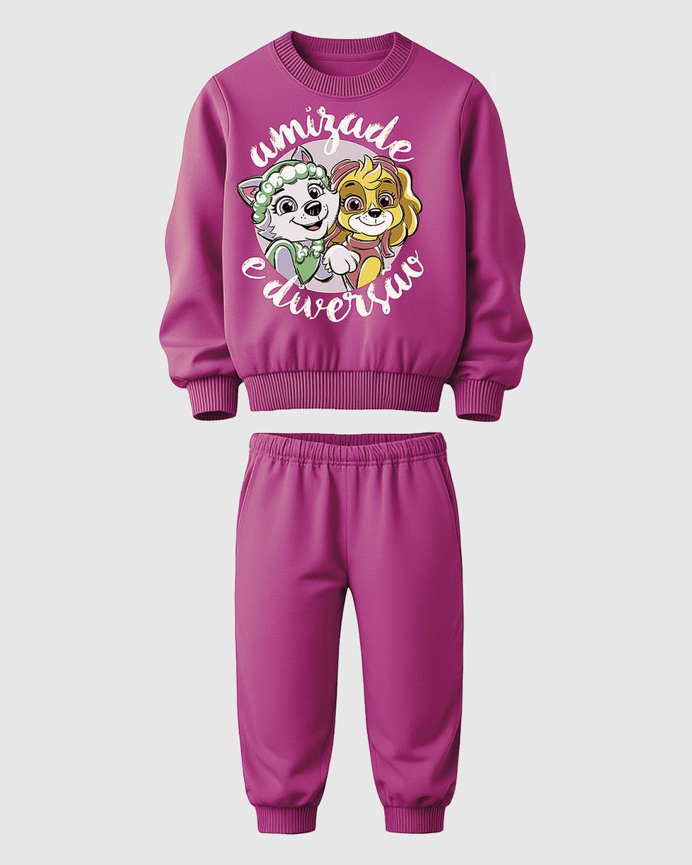 O Conjunto Infantil Menina Malwee Kids celebra a "Amizade e Diversão" com as heroínas da Patrulha Canina®. Feito em moletom flanelado, este conjunto une o máximo conforto térmico a um design encantador. Com detalhes lúdicos, é a escolha perfeita para colorir os dias de frio.