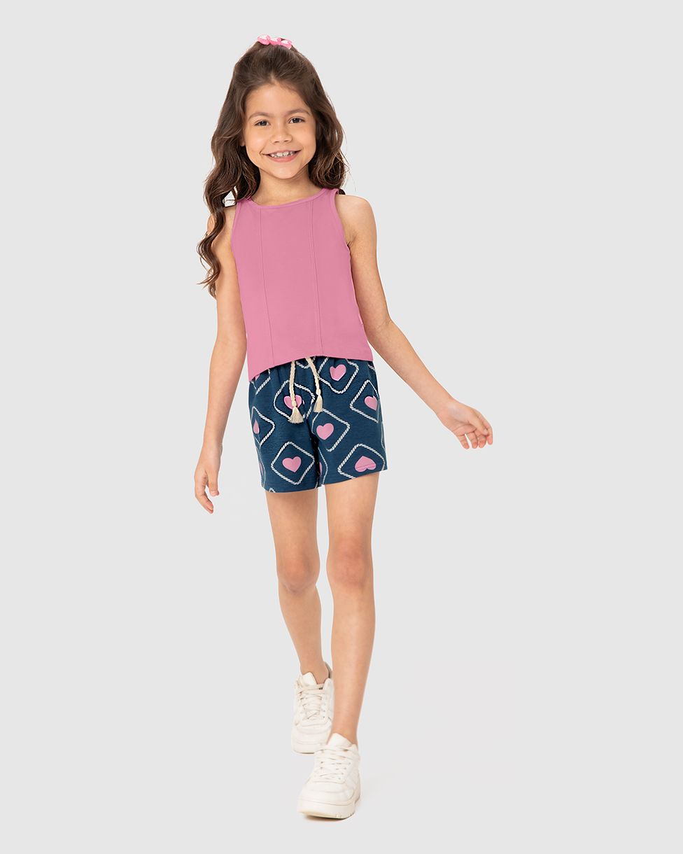 Conjunto Infantil Menina Regata Cropped + Shorts Estampado Malwee Kids