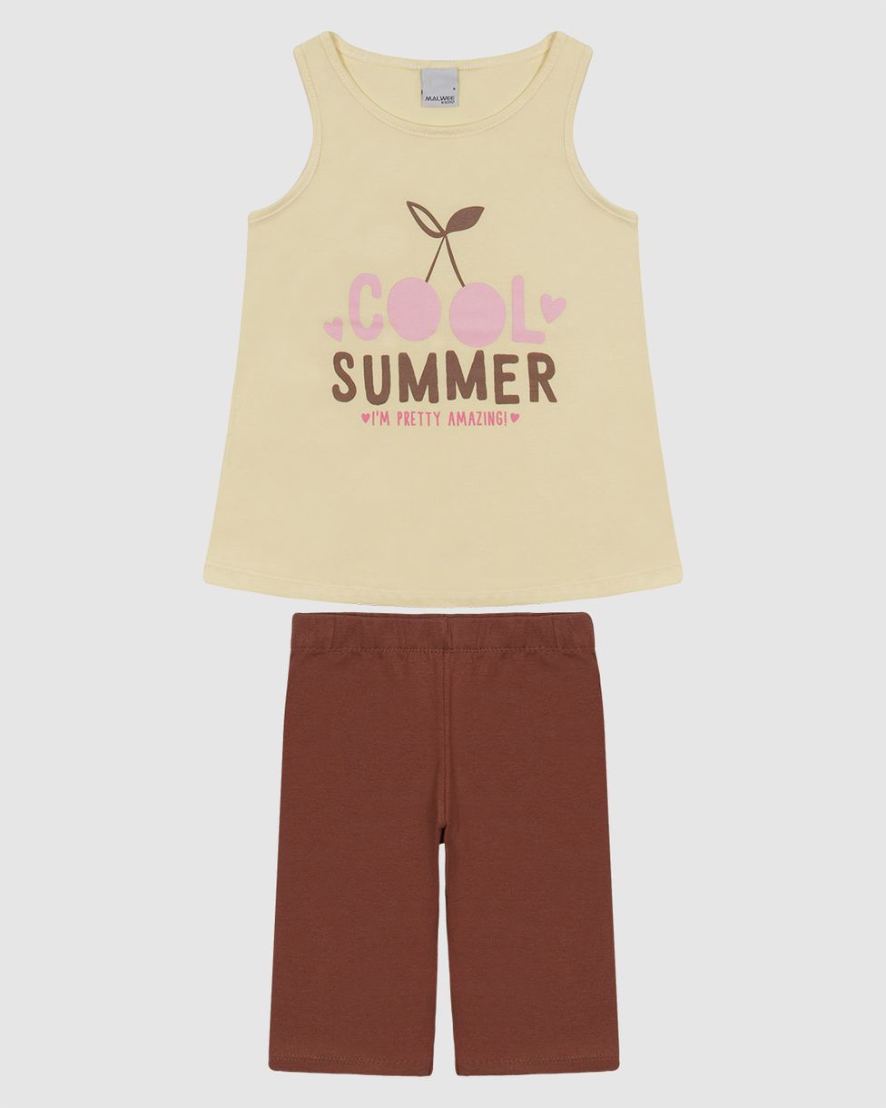 Conjunto Infantil Menina Malwee Kids: estilo e conforto para os dias quentes. Composto por uma regata de algodão e uma bermuda justa, garante liberdade de movimento e frescor. Perfeito para a rotina das meninas, é uma opção versátil e cheia de charme para brincar ou passear.