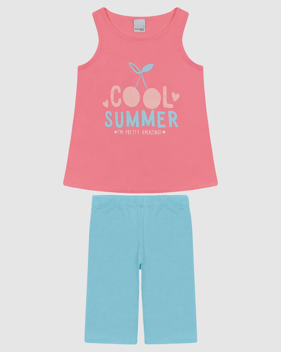 Conjunto Infantil Menina Malwee Kids: estilo e conforto para os dias quentes. Composto por uma regata de algodão e uma bermuda justa, garante liberdade de movimento e frescor. Perfeito para a rotina das meninas, é uma opção versátil e cheia de charme para brincar ou passear.