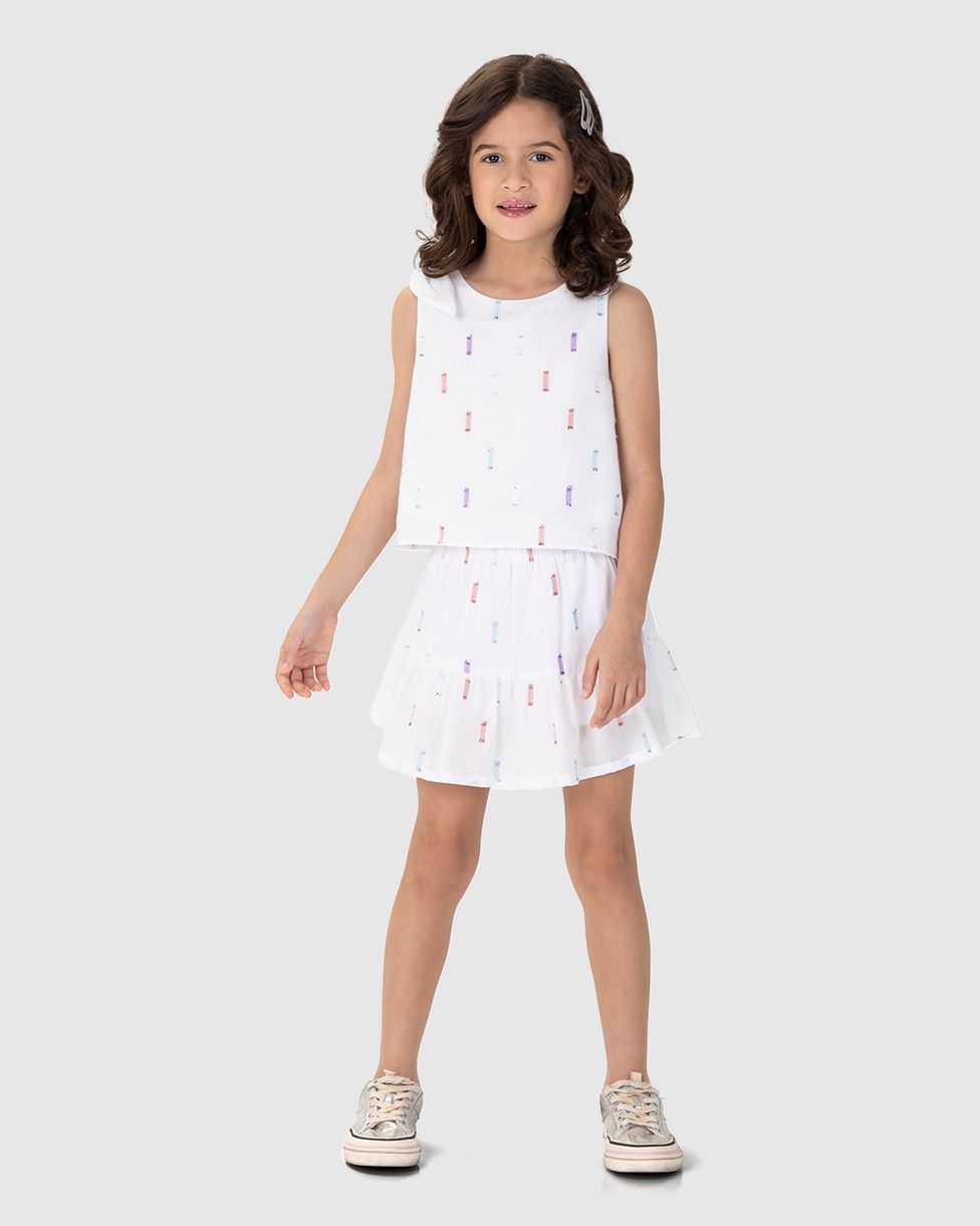 Conjunto Infantil Menina Regata E Saia Em Plumetis Brilho Malwee Kids