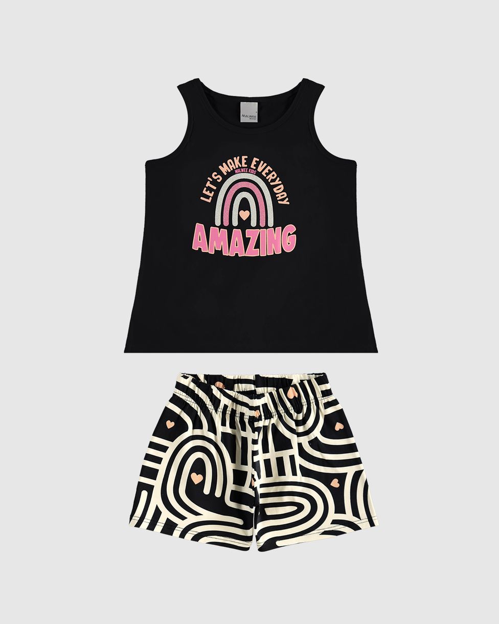 Conjunto Infantil Menina Regata E Shorts Estampado Em Algodão Malwee Kids
