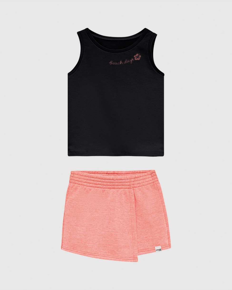 Conjunto Infantil Menina Regata E Shorts Saia Em Moletinho Rajado Malwee Kids