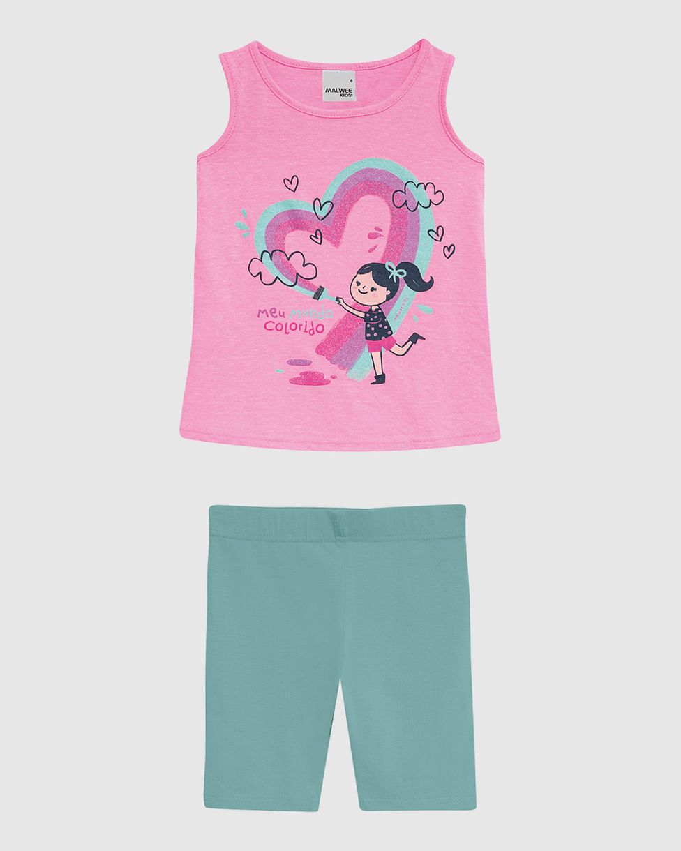 Conjunto Infantil Menina Regata Estampa Glitter E Bermuda Algodão Malwee Kids