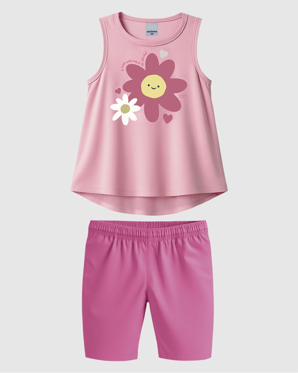 Conjunto Infantil Menina Regata Flor Mais Bela Em Algodão Malwee Kids