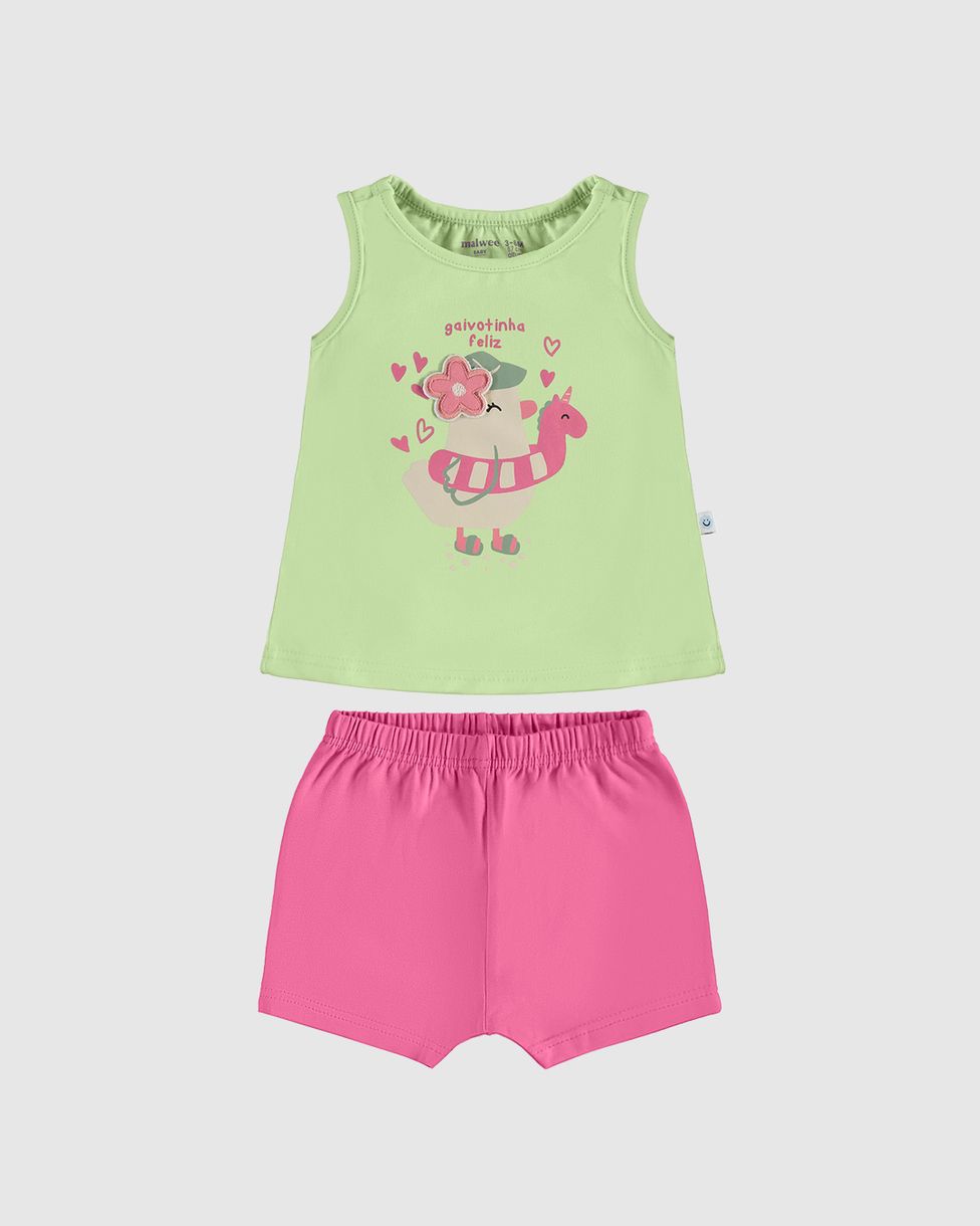 Conjunto Infantil Menina Regata Gaivotinha Feliz Em Algodão Malwee Kids