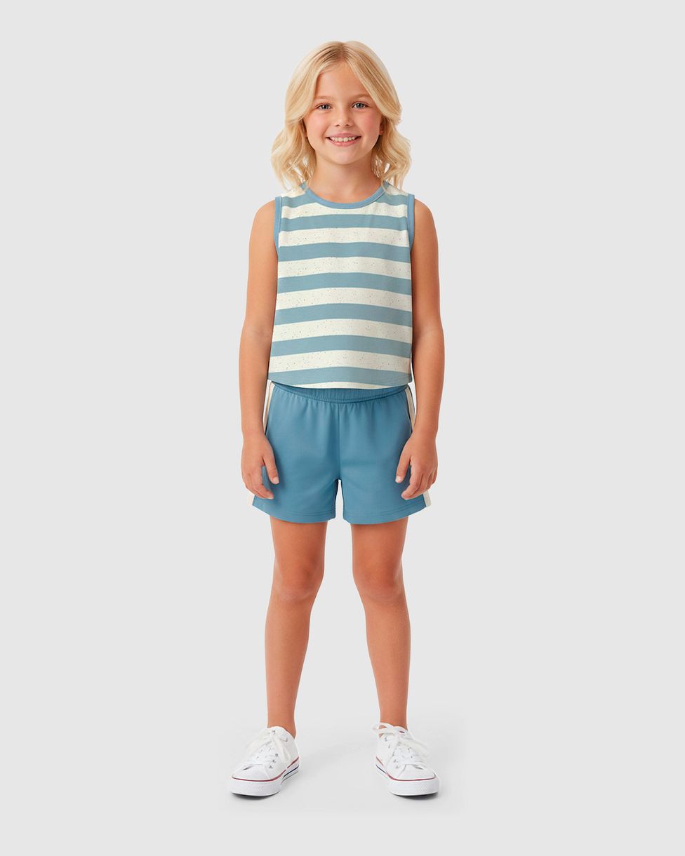 Conheça o Conjunto Infantil Menina Regata Listrada E Shorts Em Algodão! Perfeito para garantir o conforto e a liberdade que a sua menina precisa nas brincadeiras. A regata apresenta estampa listrada e etiqueta decorativa. O shorts possui listra lateral super moderna, combinando estilo e maciez para o dia a dia.