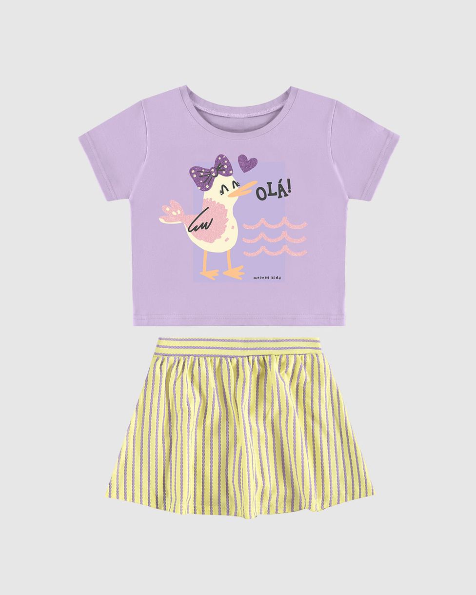 Conjunto Infantil Menina Saia Em Malha Texturizada Listrada Malwee Kids